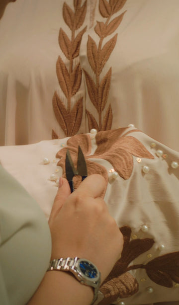 Each piece is refined in the Maison atelier, hand-finished using premium silks. From the first cut to the final thread, every step is shaped by artisans who understand modesty, movement and meaning.