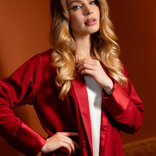 Malika Drape is a striking expression of feminine power — a red silk robe